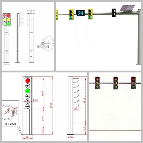 6.5m Height 3mm Thickness Single Arm Traffic Light Pole with Galvanization